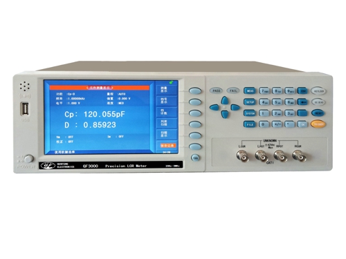 GF3000高精密数字电桥是一种用于各种电子元器件检验的多功能元件参数测试仪。采用7英寸800x480彩色TFT LCD显示器。高速、稳定。20Hz-3MHz多频率点以及0.05%的精度可满足生产线品质把控、进货检验及实验室测量等要求。